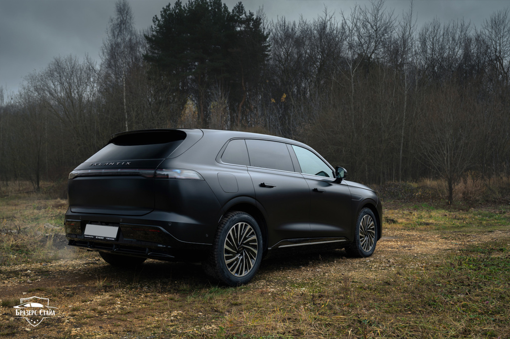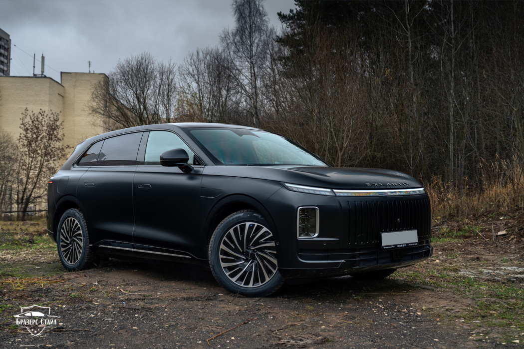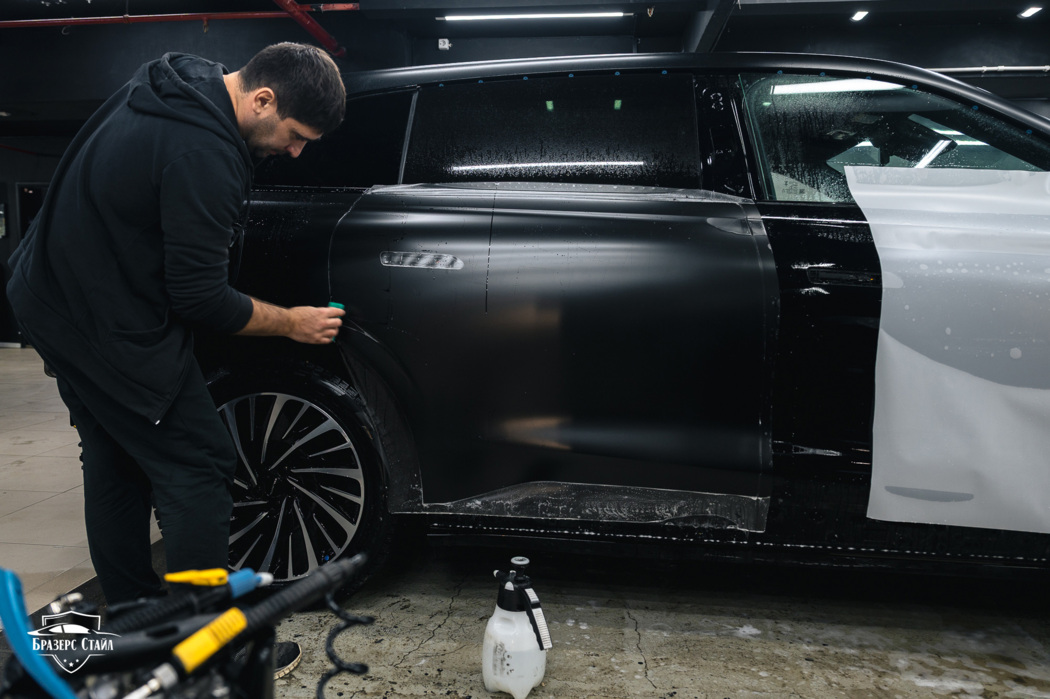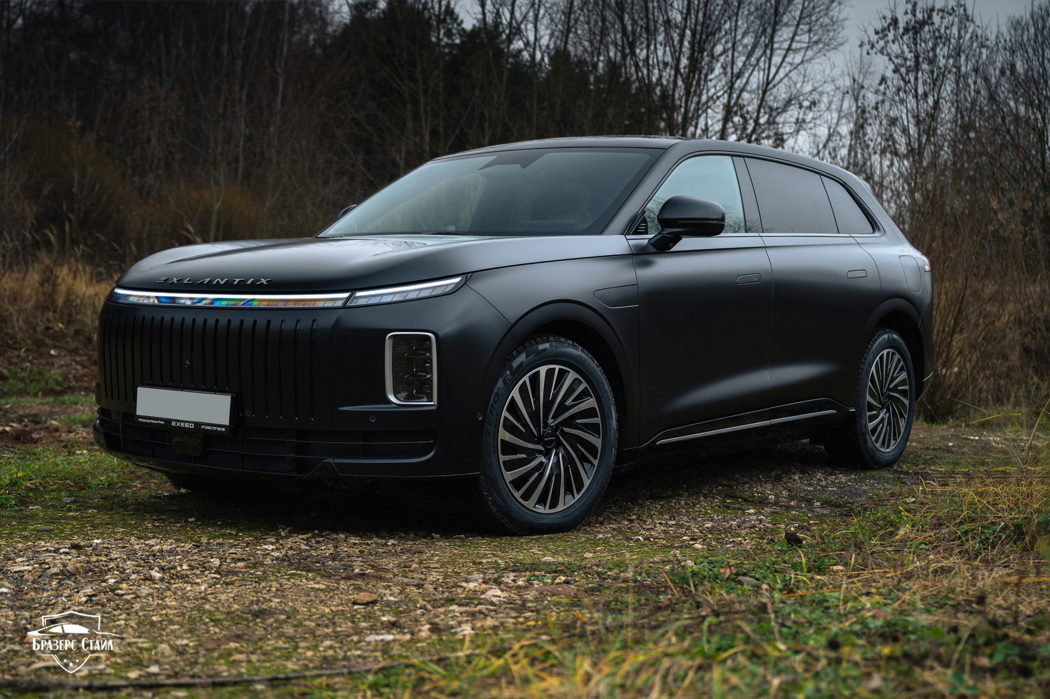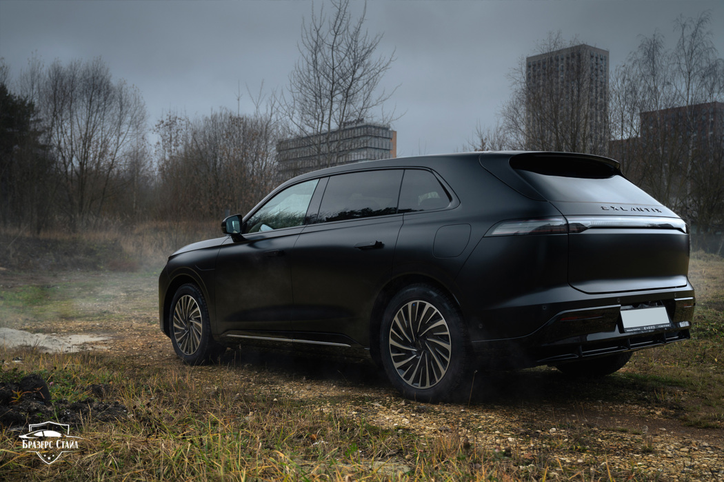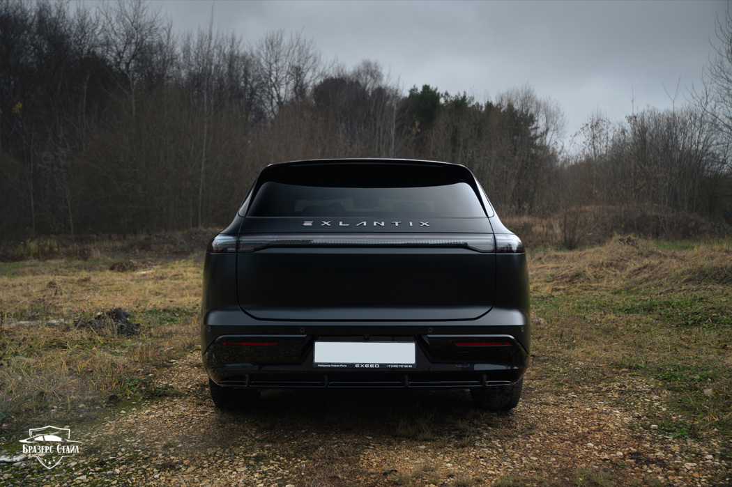 Для защиты лакокрасочного покрытия владелец Exlantix ET выбрал оклейку матовым полиуретаном. Изначально планировалось защитить автомобиль плёнкой STEK, но после обсуждения и демонстрации материалов мы склонили заказчика в пользу плёнки Vega Satin.