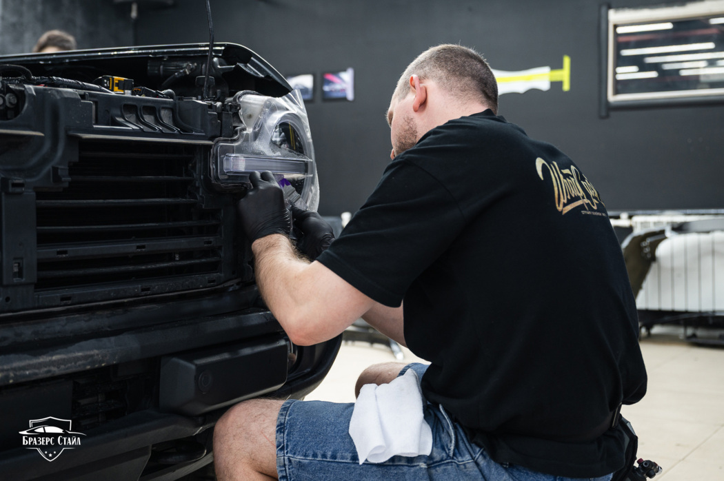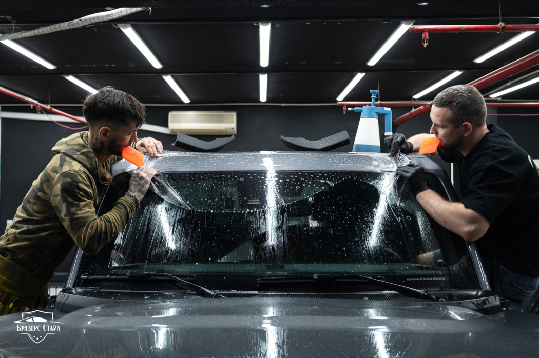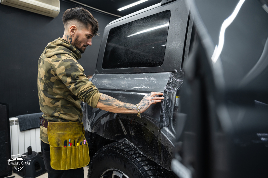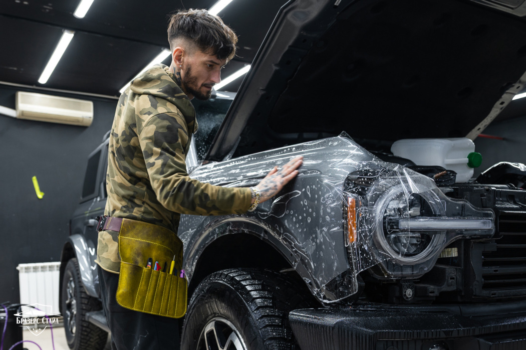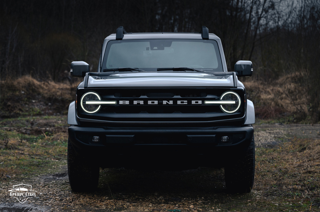 Ford Bronco — большой и брутальный внедорожник с квадратным кузовом. Такой кузов важно своевременно оклеить защитой плёнкой, иначе он очень быстро покроется сколами. Именно за этой услуг приехал к нам клиент.
