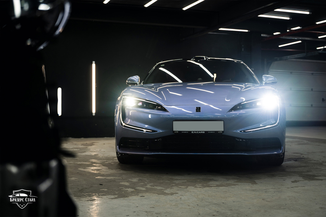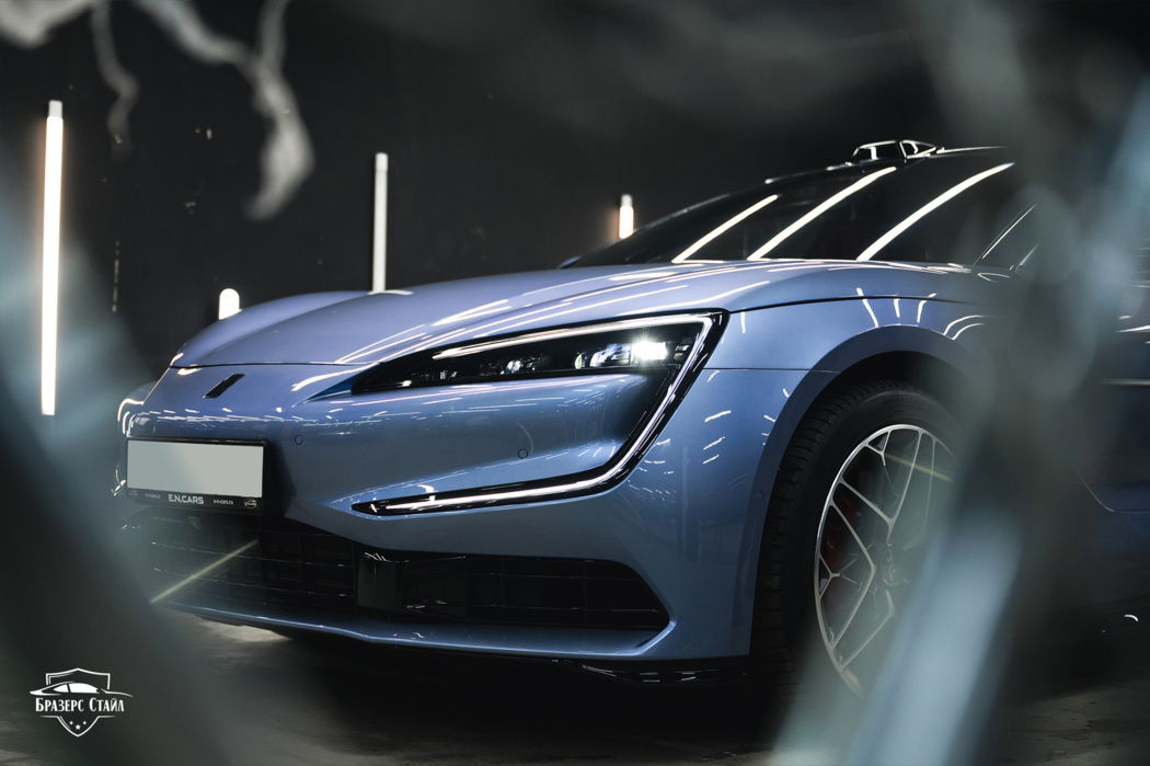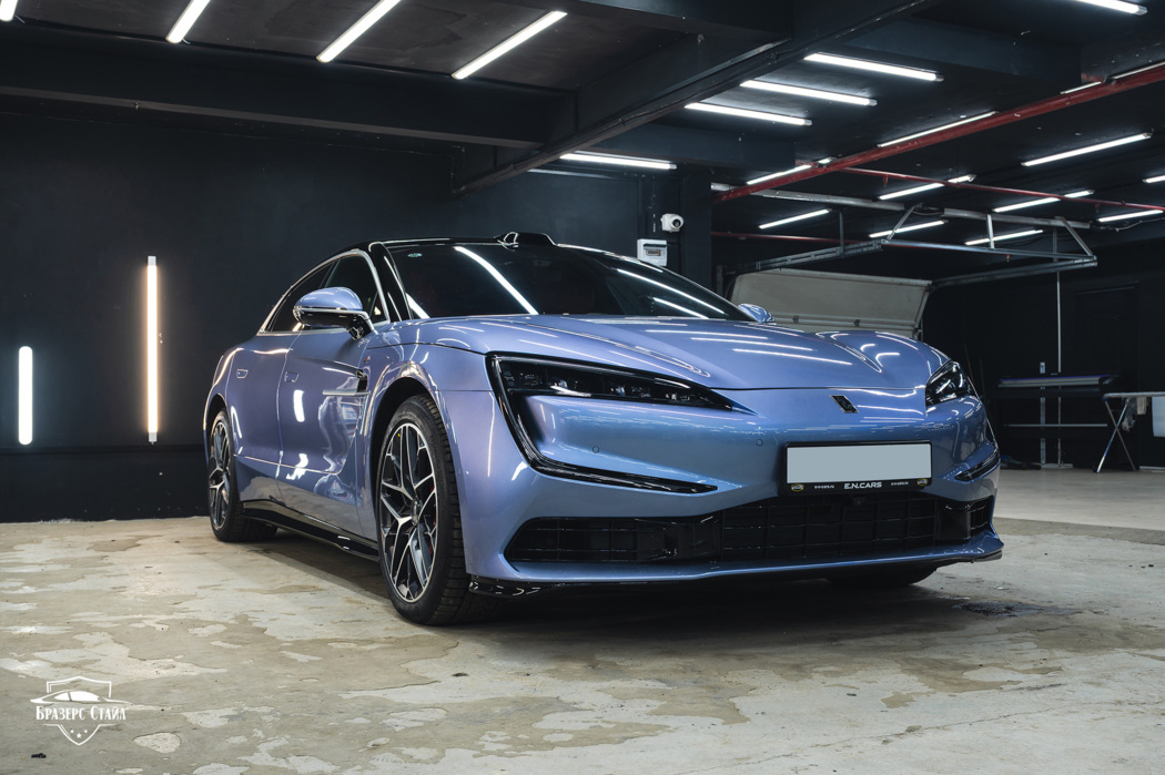 Мы выполнили оклейку кузова Yangwang U7 глянцевой полиуретановой плёнкой ISF Film NG-220. Помимо кузова, мы также оклеили все чёрные глянцевые и хромированные элементы экстерьера. Финальным штрихом стало бронирование лобового стекла. Теперь автомобиль с мощностью в 1306 лошадиных сил полностью готов к серьёзным и суровым вызовам на дорогах.