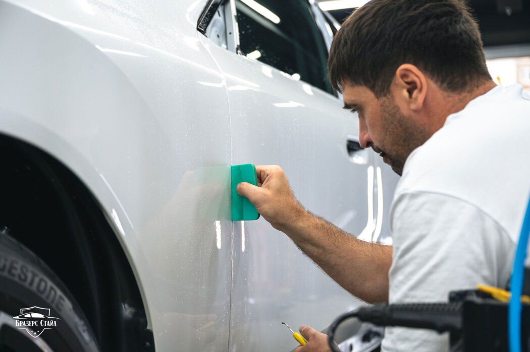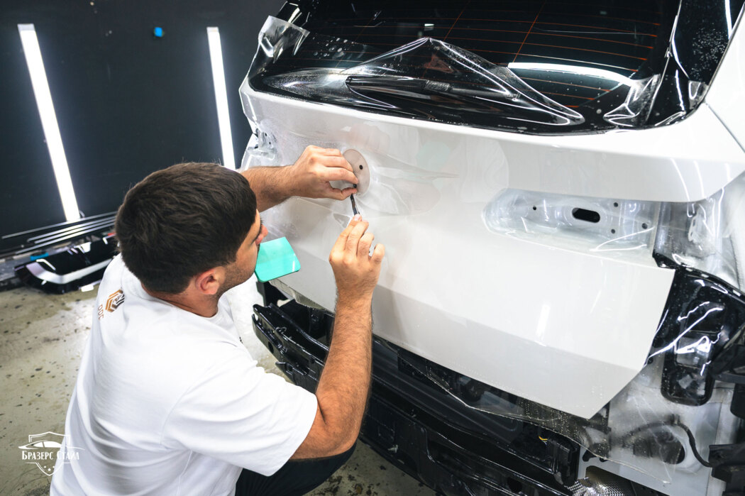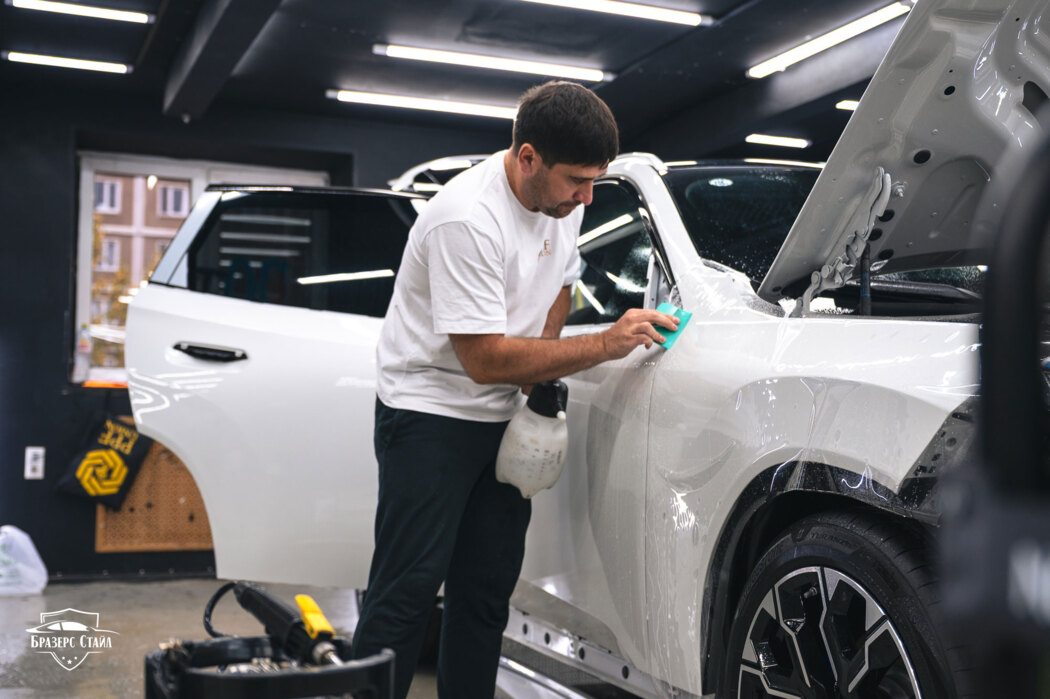 Мы постоянно повторяем, что владельцам белых машин нужно очень ответственно отнестись к выбору материала или к студии, которая предлагает вам ту или иную продукцию, чтобы, если что-то случится с плёнкой, вам было куда обратиться через время. Для защиты BMW X3 мы использовали полиуретановую плёнку Nano Link Standard толщиной 190 микрон.
