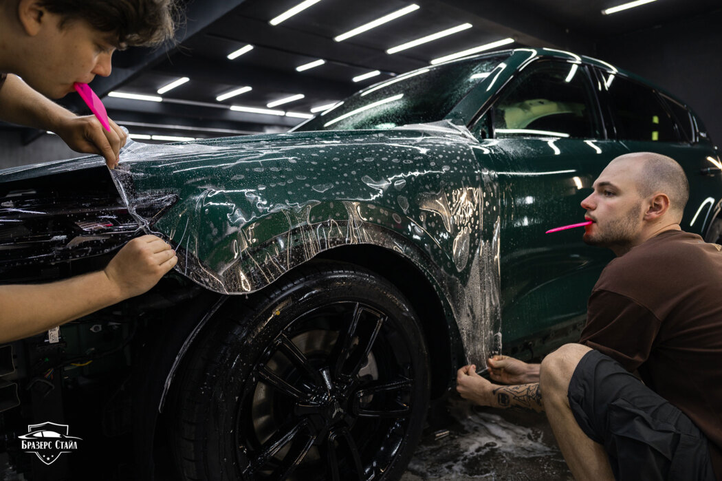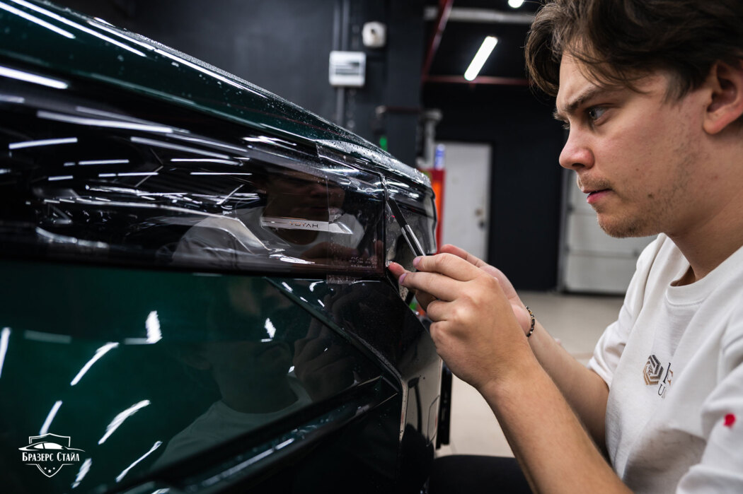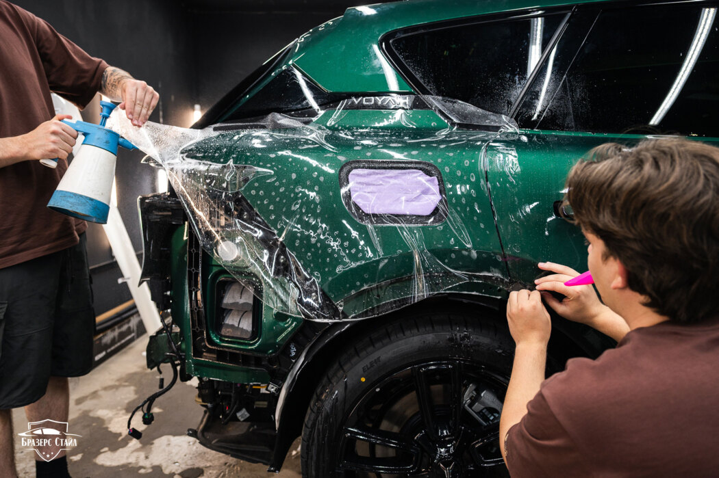 Мы уточнили у владельца, как, где и в каких условиях будет эксплуатироваться автомобиль, после чего предложили наш вариант материала — плёнку Nano Link Standard — и несколько альтернативных вариантов и рассказали, чем они будут отличаться. По итогу для защиты кузова Voyah Free была выбрана глянцевая полиуретановая плёнка Nano Link PPF Standard толщиной 240 микрон.