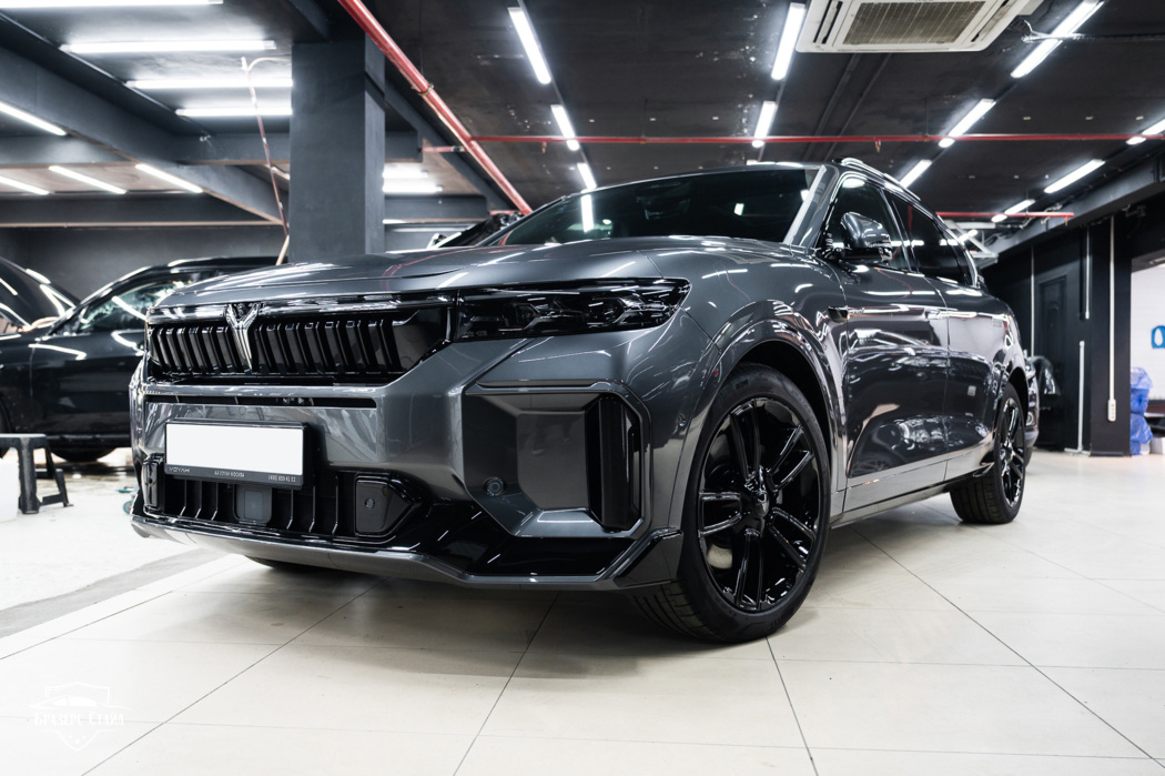 Владелец этого автомобиля обратился к нам, как раз чтобы защитить кузов и сделать его матовым. Для оклейки Voyah Free мы использовали матовый полиуретан Vega Satin.