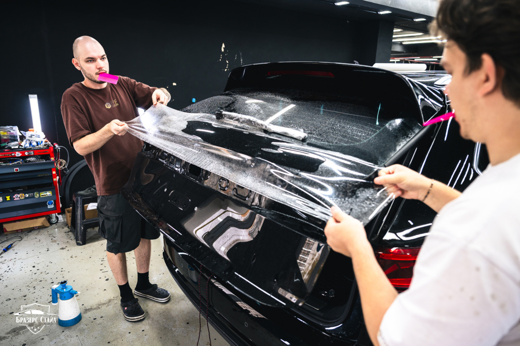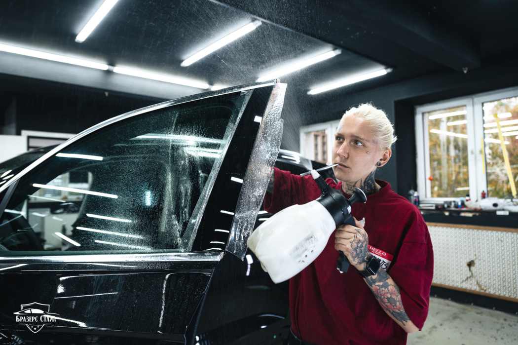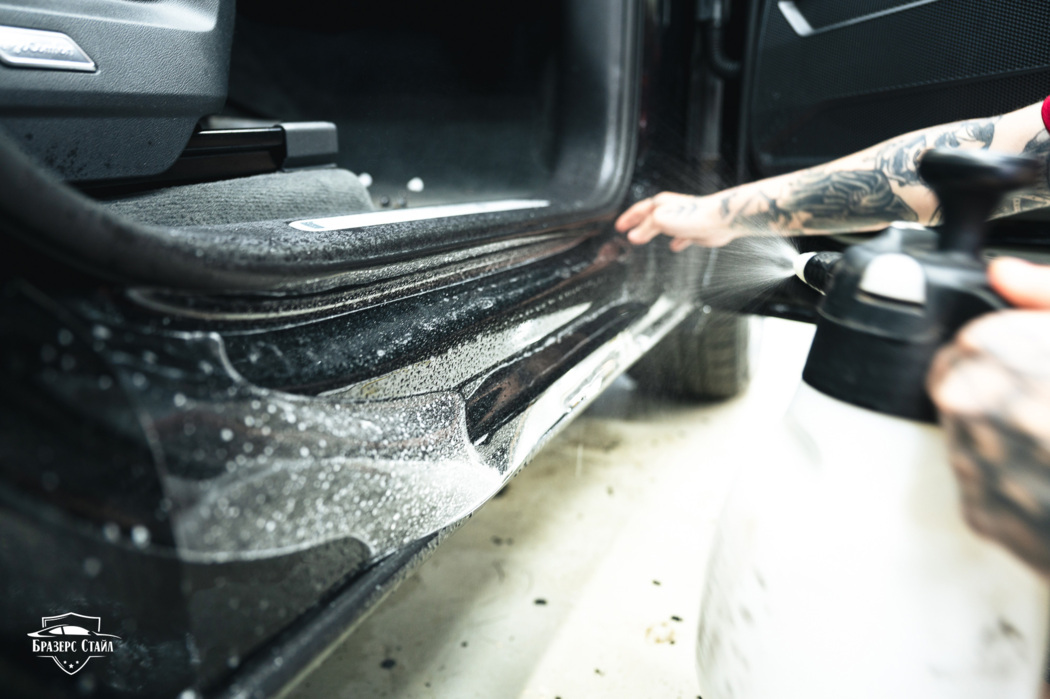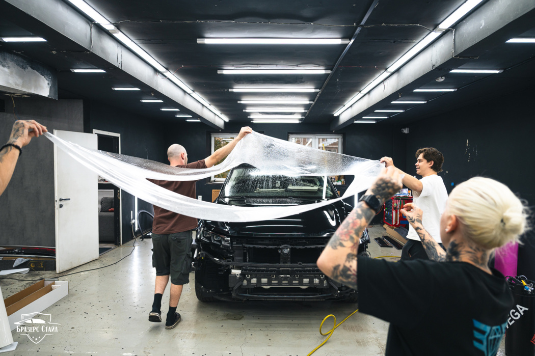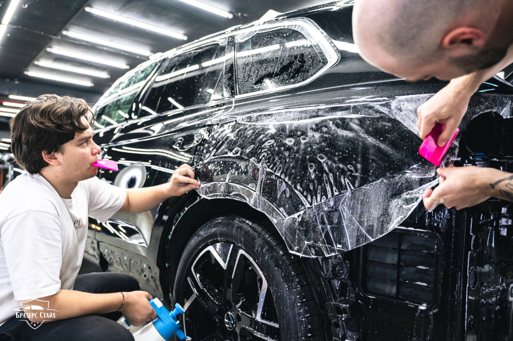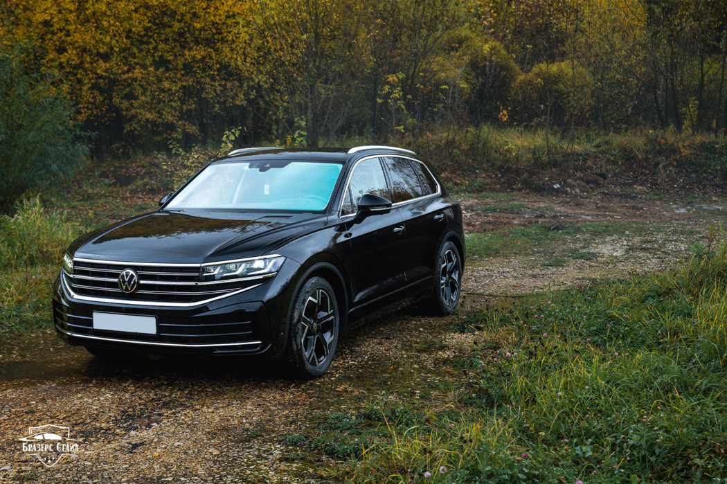 В этот раз для защиты кузова Volkswagen Touareg мы использовали плёнку IQProtect Gloss. Данная плёнка имеет толщину 190 мкм и обеспечивает надёжную защиту от царапин, сколов и других мелких повреждений. Кроме кузова, мы также защитили чёрные глянцевые стойки на дверях, внутренние пороги и хром на переднем бампере.
